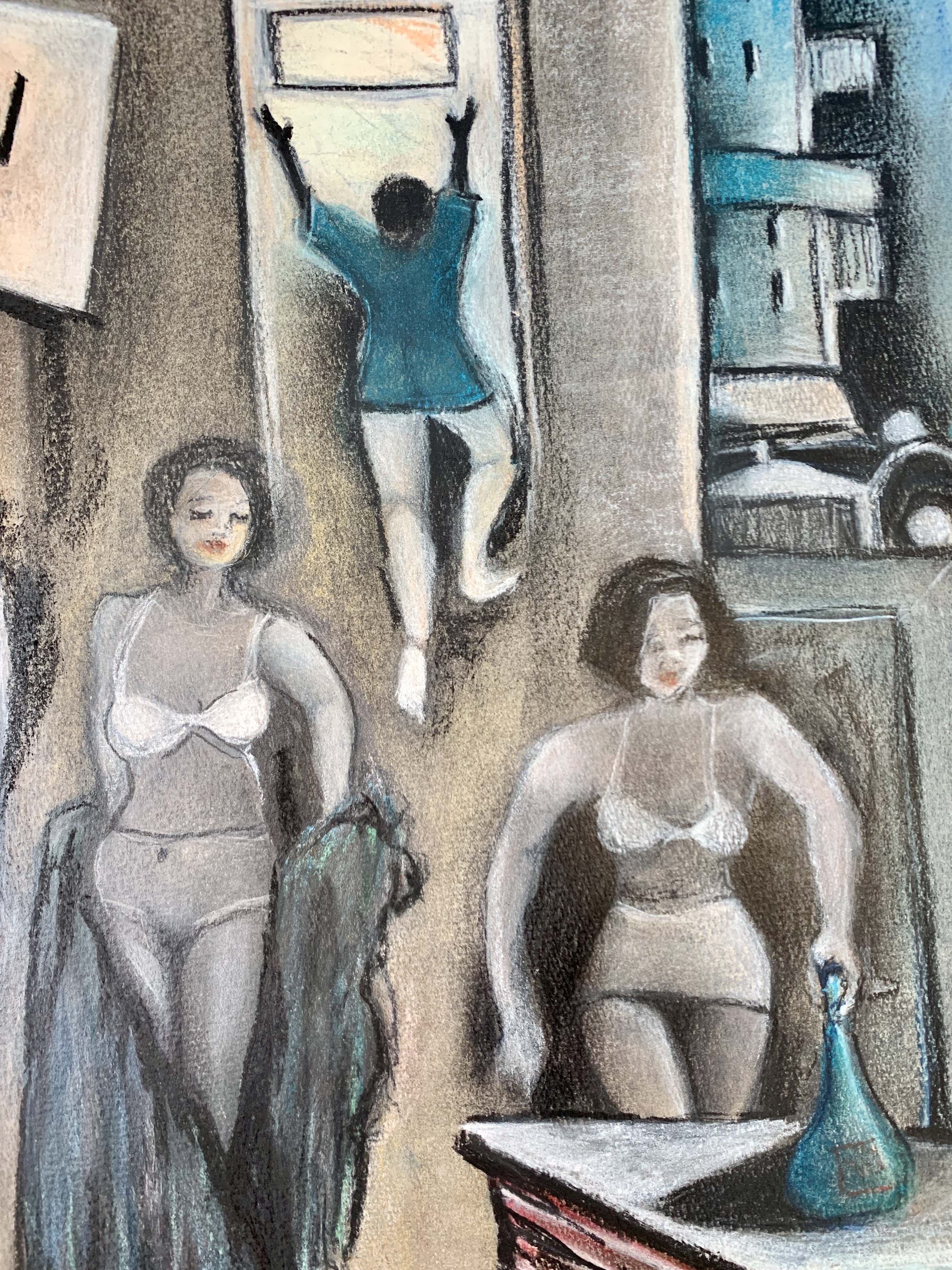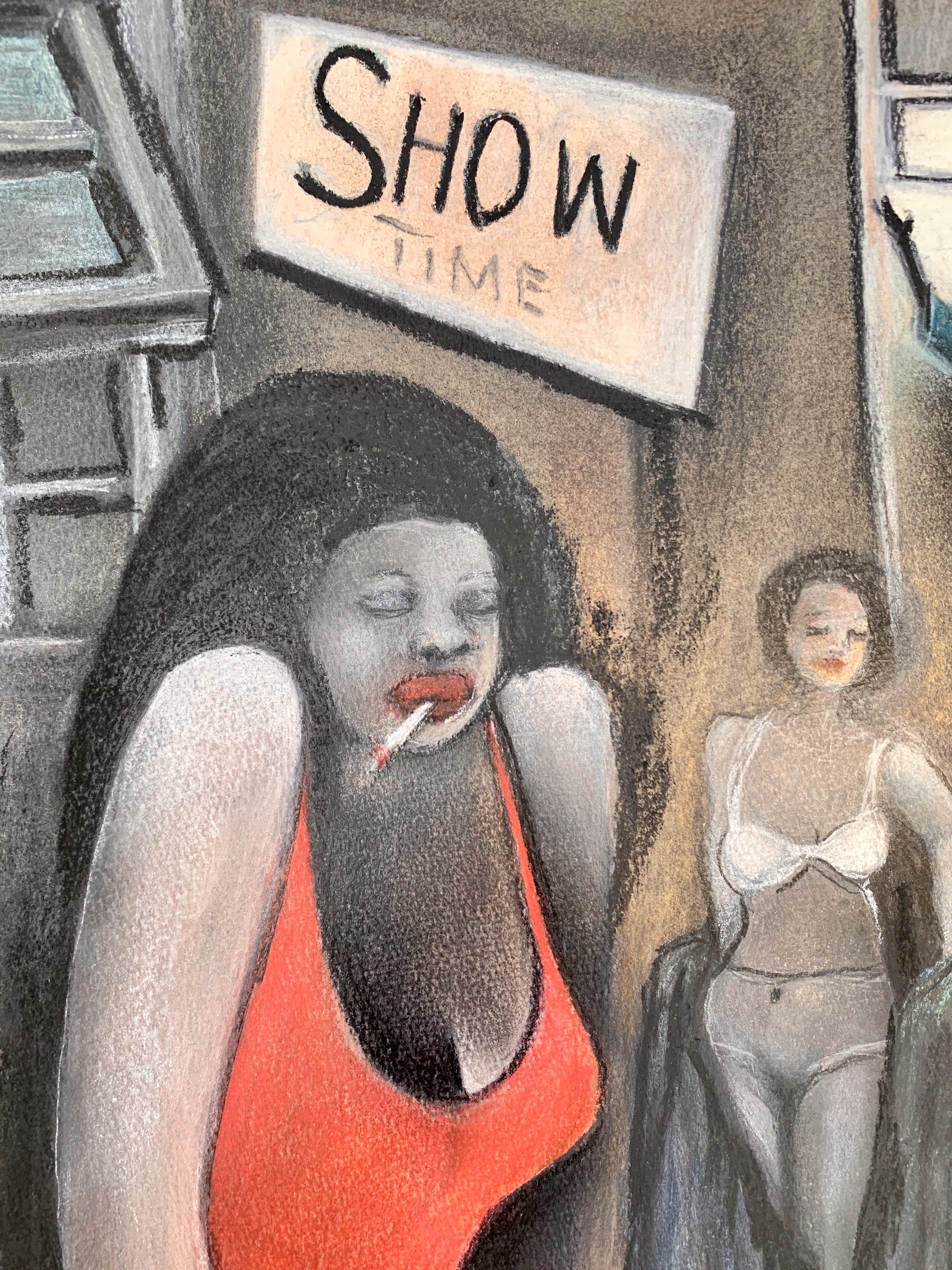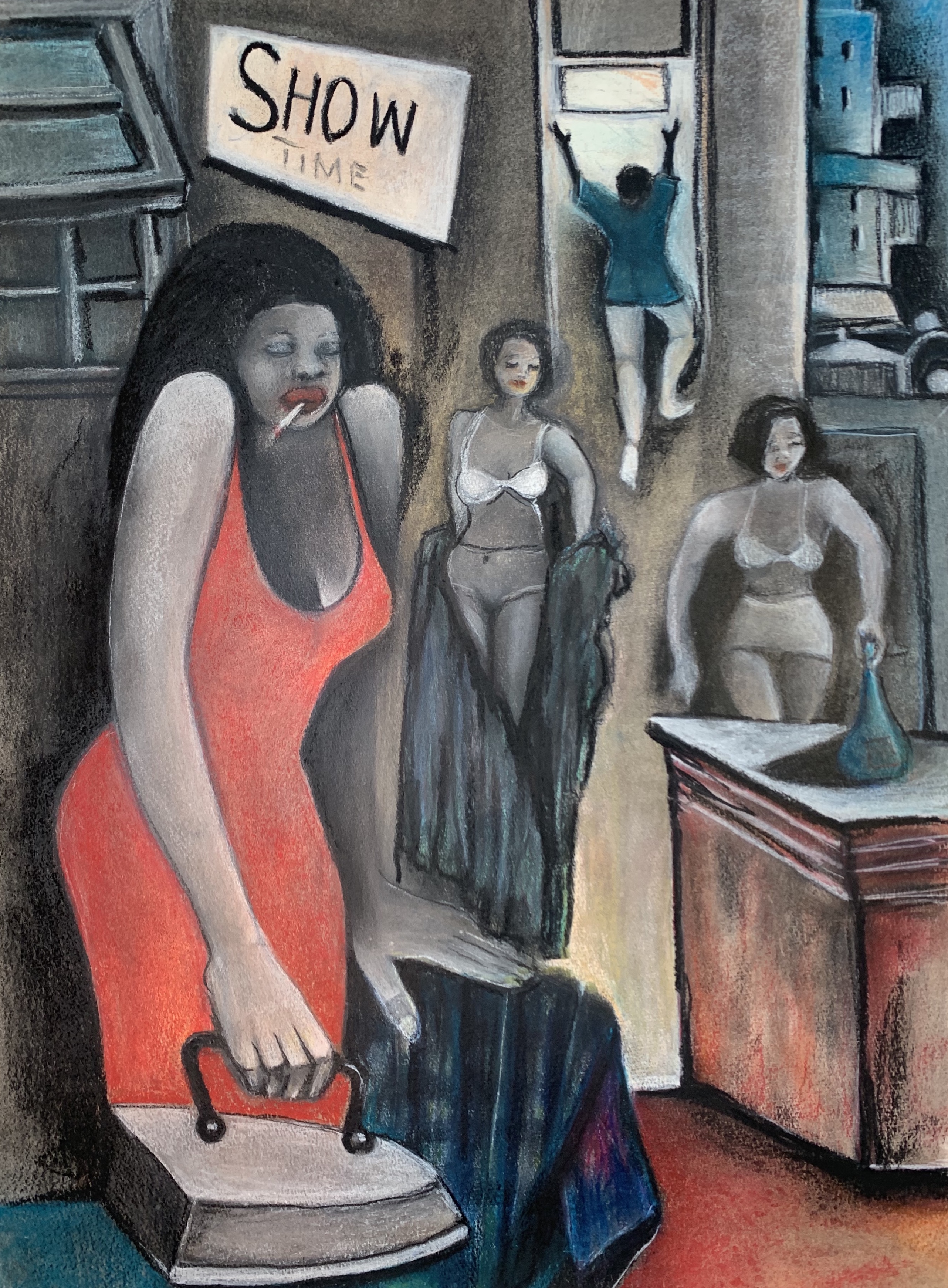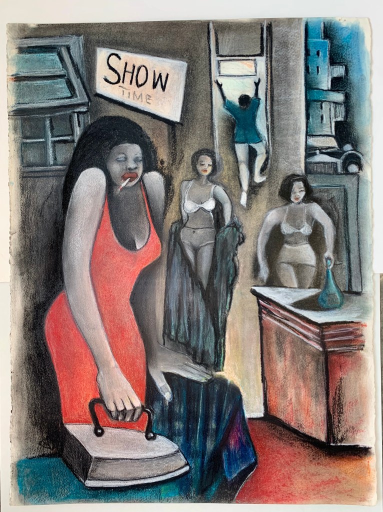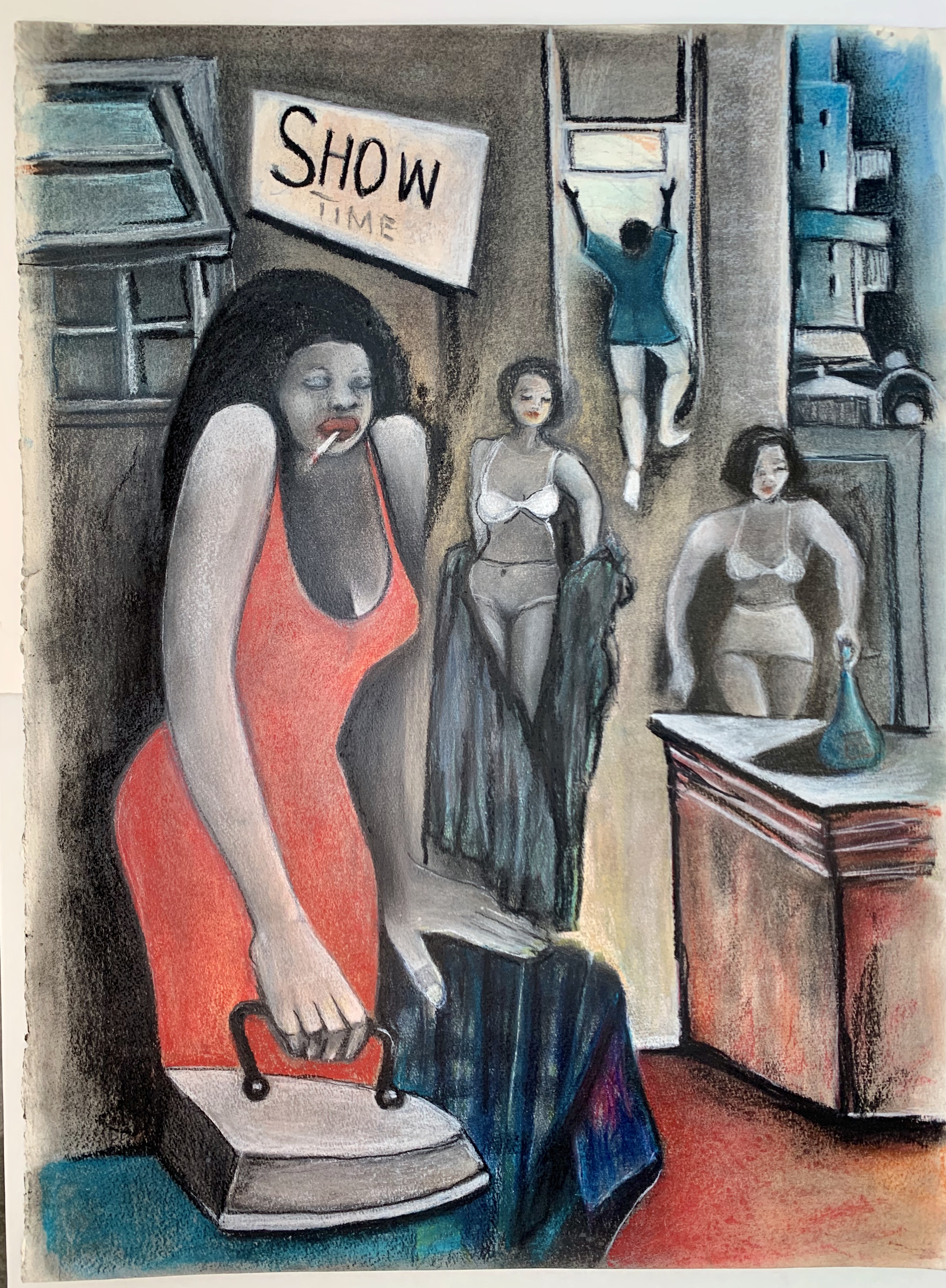 George Redd, “Show Time”, mixed media including watercolor & graphite on paper, 30 x 22.5 inches (unframed), circa mid-1960s.
